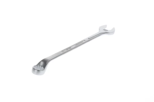 Ausführung nach DIN 3113 Form B, ISO 3318, ISO 7738, Größe 5 und 5,5 mm mit 6-kant Ring, ab 6 mm mit UD-Profil, Chrom-Vanadium-Stahl 31CrV3, verchromt, Sorgfältig geschmiedet und fachgerecht verarbeitet, Ring: gekröpft und 10° abgewinkelt, mit UD-Profil für schonende Kraftübertragung, Überbelastung wird durch Verformung angezeigt, Tiefliegende bzw. versenkte Muttern oder Schrauben können mit dem gekröpften Ring sicher betätigt werden, Hochwertige Industriequalität für harte Dauerbeanspruchung, * nicht genormt