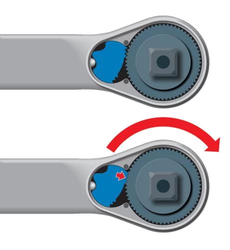 • Feinverzahnt (60 Zähne), mit Umschalthebel und Druckknopfauslösung
