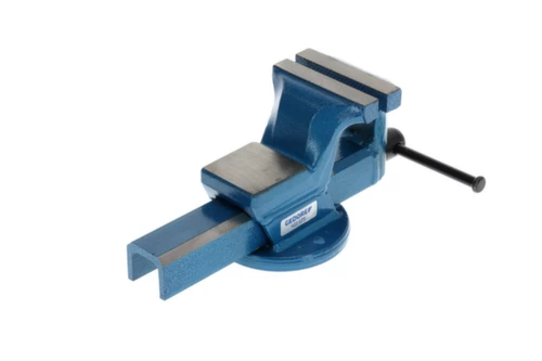 Stabile geschmiedete Ausführung, Spannbacken und Ambossplatte induktiv gehärtet, Spannbacken induktiv gehärtet, Geschützte Schraubstockspindel, Nachstellbare Führung, Blau lackiert