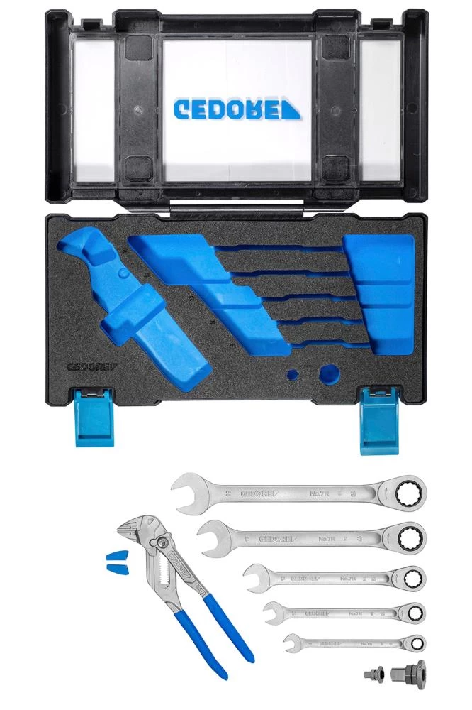 Gedore 7 RA 183 Maul-Ringratschenschlüssel-Satz mit Zangenschlüssel