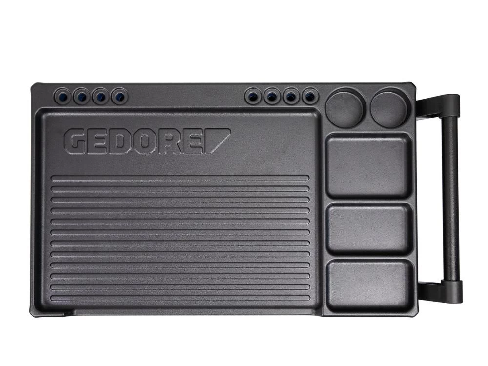 • Ablageplatte aus ABS-Kunststoff mit 3 Kleinteilefächern, 2 Dosenablagen, 8 Schraubendreherablagen